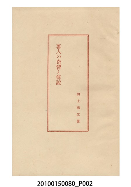 1. 蕃人の奇習と傳說,臺灣記憶,https://tm.ncl.edu.tw/article?u=010_001_0000433497(瀏覽日期:2019/08/28)2. 蕃人の奇習と傳說,關鍵出版窗,http://keypublishing.ksml.edu.tw/book_desc.aspx?ID=134(瀏覽日期:2019/08/28)