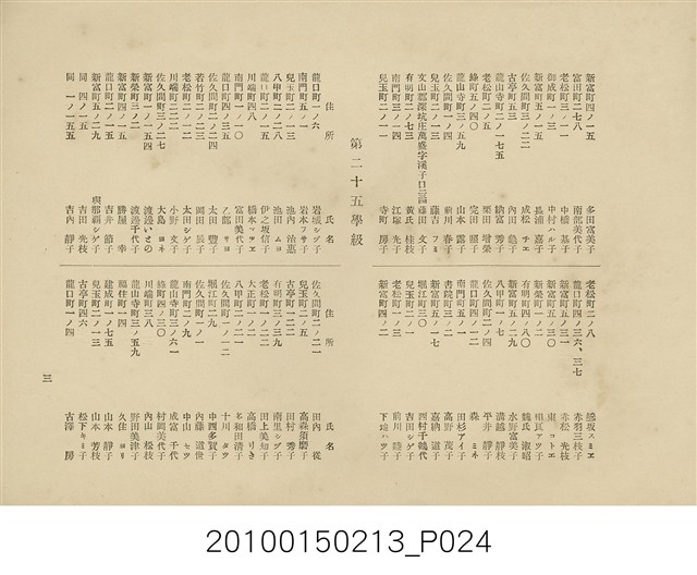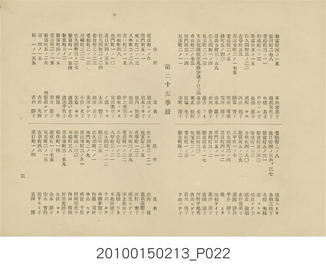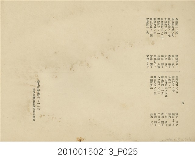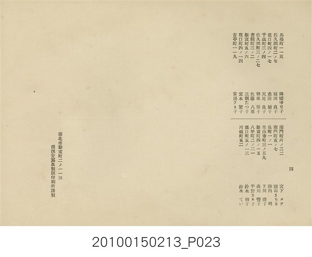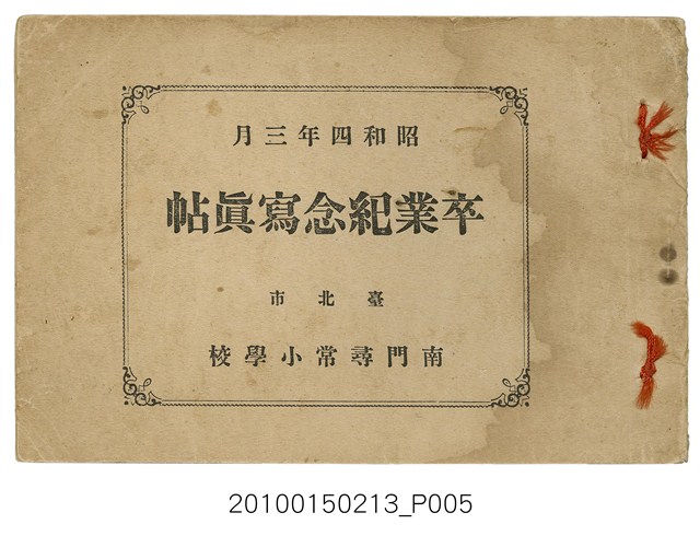 本件為臺北市南門尋常小學校畢業紀念冊,製作時間為昭和4年(1929)3月,四孔線裝,黑白印刷,由臺北市新富町南溟舍寫真製版印刷所製作。內容包含體操照、校園景觀照等,尾頁附有畢業生名冊。臺北市南門尋常小學校(現址為南門國民中學、南門國民小學),1909年作為「臺北第三尋常高等小學校」成立,隔年成為代用的「臺灣總督府國語學校附屬小學校」,至1913年解除。1915年4月,臺北第三尋常高等小學校高等科廢止,更名為「臺北第三尋常小學校」,同年9月改稱「臺北城南尋常小學校」,因應行政區、學制的調整,隨後又有「臺北市南門尋常小學校」、「臺北市南門國民學校」等名稱。該校名沿革,如下:1909年,臺北第三尋常高等小學校;1915年,臺北第三尋常小學校;1915年,臺北城南尋常小學校;1922年,臺北市南門尋常小學校;1941年,臺北市南門國民學校(戰後廢止)。