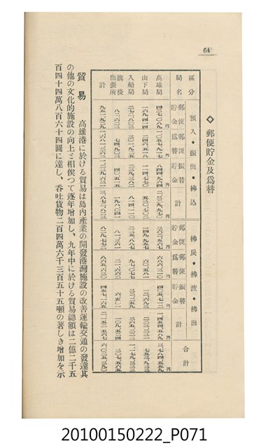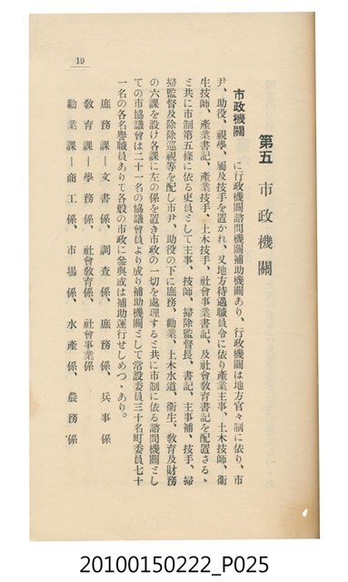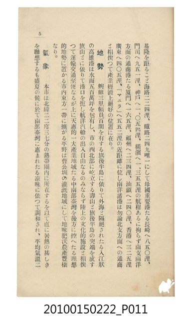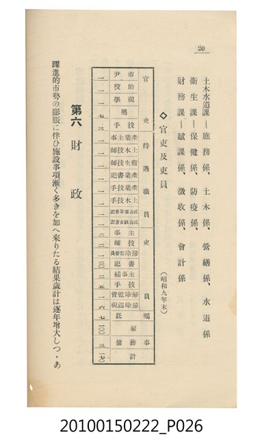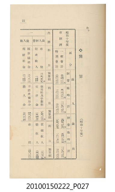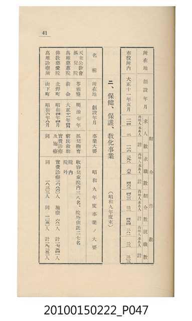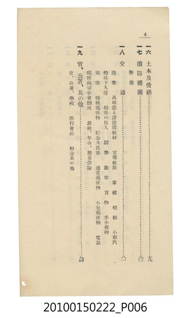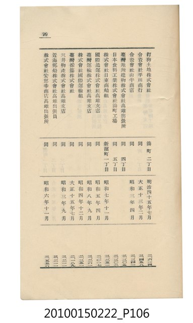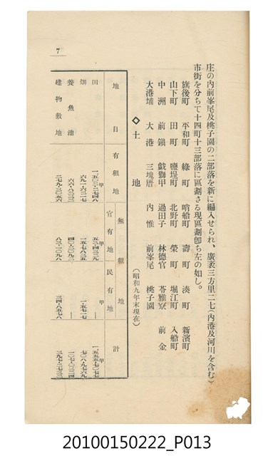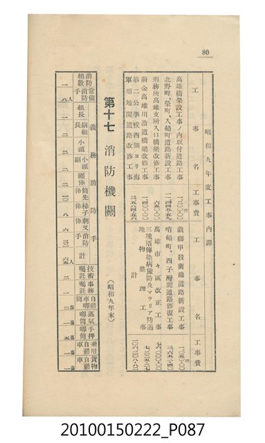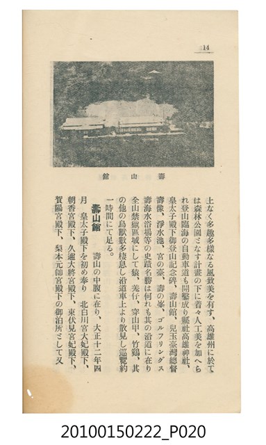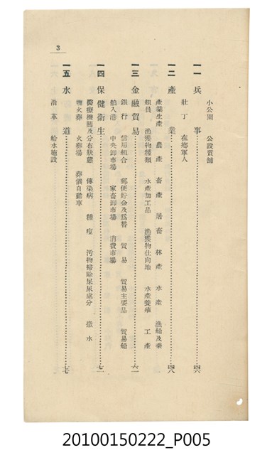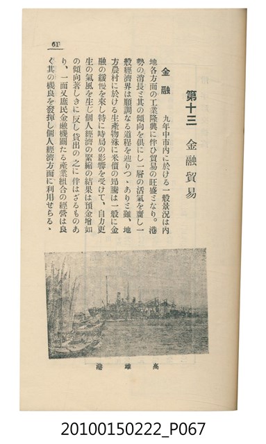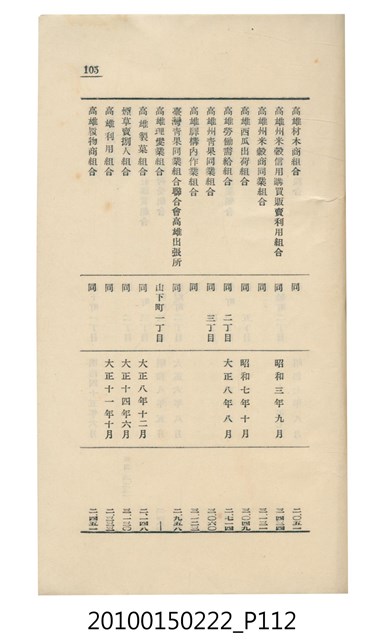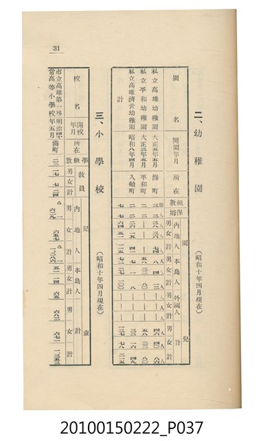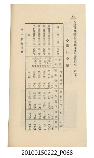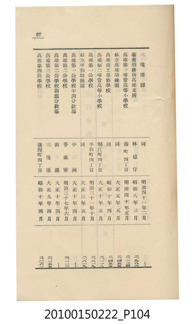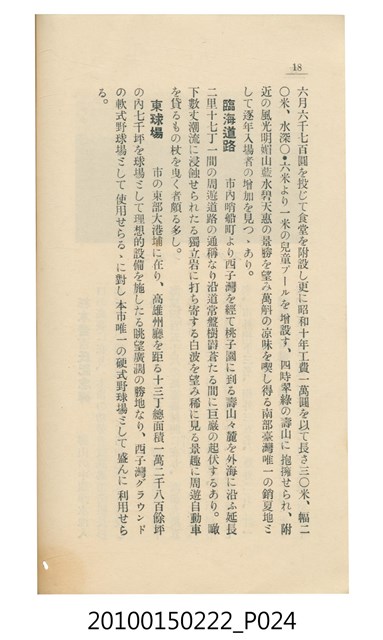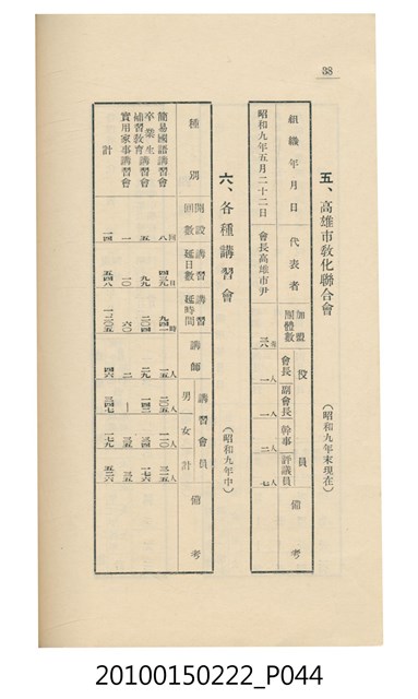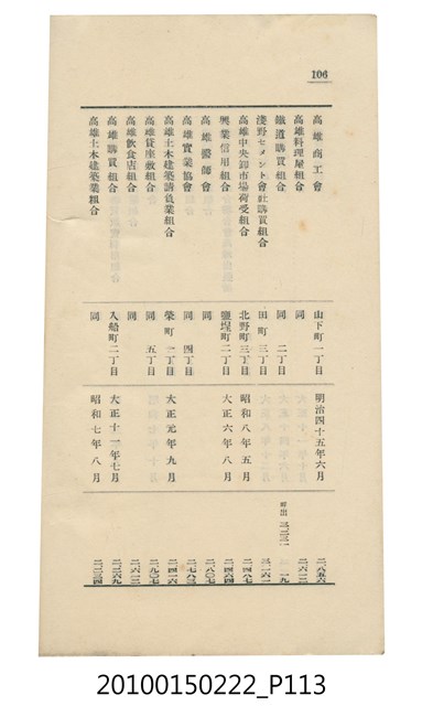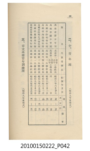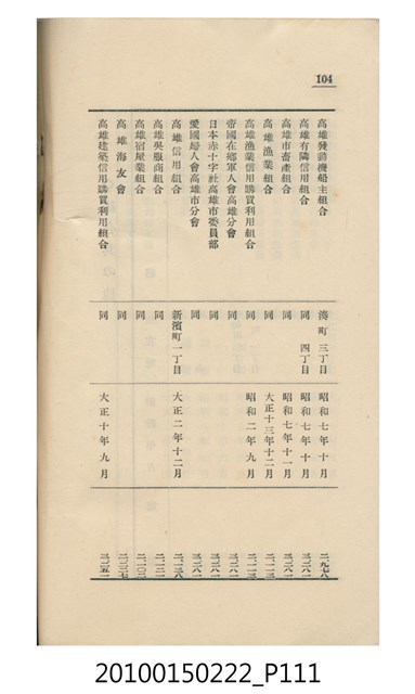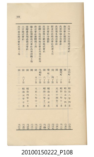 《高雄市要覽》,高雄市役所編纂,印刷所南報商事社,昭和10(1935)年10月13日發行。 本書是地方政府所做的地方導覽,內容包含沿革、地理、戶口、史蹟名稱、市政機關、財政、社寺宗教、教育、社會教育、社會事業、兵事、產業、金融貿易、保健衛生、水道、土木及營造、消防機關、交通、官公署及其他等19章,多統計資料,可作為地方研究的史料。