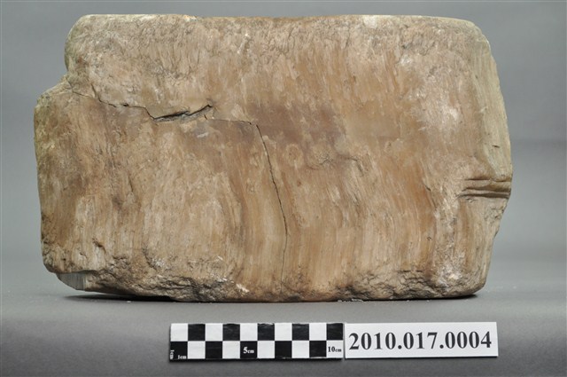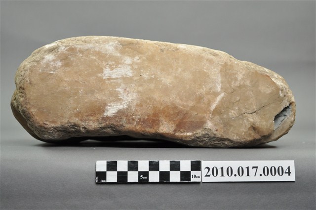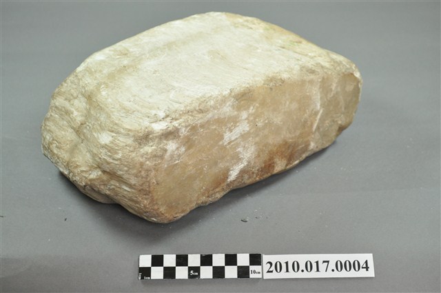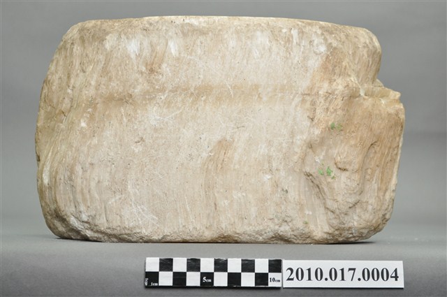 1. 本件是一長方形的石枕,是以天然的黃白色頁岩製成,岩石的長條形節理明顯,並有多處破損,除底面有刻意磨平之外,並無任何人工雕飾痕跡。2. 華夏古代常見以木石陶瓷等硬物為枕,稱為硬枕,這類材質較棉布等涼爽,也是夏日納涼之用品。亦有硬枕較難入睡,而有警醒世人不可怠惰之意。