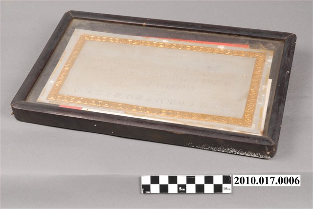此物件為感謝狀,為電腦打字檔外附木質裱框,發文者為臺南市大林里代表蔡劉麗華,受文者為時任臺南市議員劉樹森。 本物件的持有人為劉樹森(1913-2008),為臺南市的第六屆議員,他出生於河南省信陽縣,畢業於河南開封甲等工專,後投筆從戎加入軍隊,並先後擔任陸軍少將師長、河南省信陽縣長暨成防司令,另也曾擔任團主任支隊司令、團主任團長、代理縣長。劉樹森來臺後定居於臺南,並擔任國民黨臺南市黨部第二組長,女兒為曾經擔任成功大學外文系主任的劉開鈴。 今日的臺南市南區大林里原為林投樹區,移墾者以「大林」命名之。中華民國政府遷台後,循此淵源將該地編列為「大林里」。