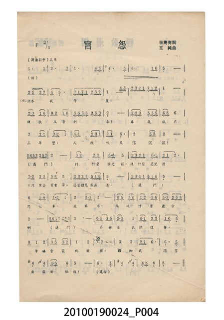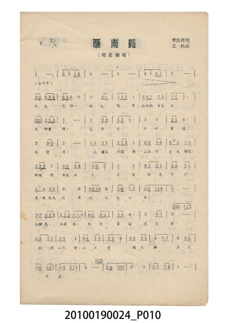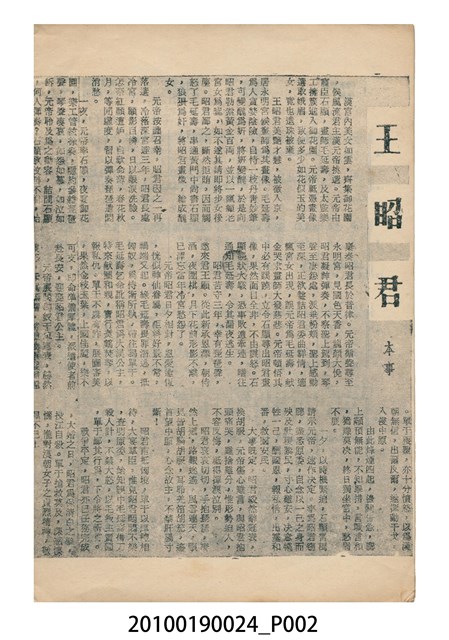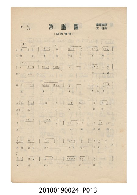 1. 香港電影《王昭君》於越南的戲院上映時的電影本事小冊。本事封面印有林黛抱琵琶盤坐的劇照,並印有片名「王昭君」,內頁有該片簡介,以及該劇中〈春思〉、〈宮怨〉、〈輕歌漫舞〉、〈別漢〉、〈灞橋〉等歌曲的曲譜。封底則沒有印刷內容。本事內頁收錄《王昭君》的電影故事、多首主題曲的曲詞與曲譜。2. 《王昭君》是1964年邵氏兄弟有限公司出品,由李翰祥執導,林黛、李英、蔣光超、洪波、趙雷等領銜主演的古裝黃梅調電影。影片講述了傳奇女子王昭君的一生。李翰祥(1926-1996)是香港著名電影導演,作品以宮闈片、歷史片聞名,1954年進入邵氏導片,拍攝多套古裝片,包括《江山美人》(1959)、《王昭君》(1964)、《梁山伯與祝英台》(1963)等,獲票房與好評。