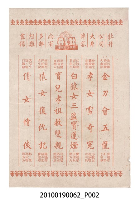 康樂及文化事務署博物館統一藏品查詢系統https://mcms.lcsd.gov.hk/FAMS_ipac/cclib/search/showBib.jsp?oai=Y&f=e&id=65537234880005香港影庫https://hkmdb.com/db/companies/view.mhtml?id=821&display_set=big5瀏覽日期:2022/07/25