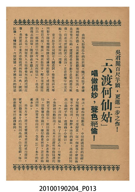 1. 《軟皮蛇三鬥老虎乸 》(1957),HKMDB,https://hkmdb.com/db/movies/view.mhtml?id=2458&complete_credits=1&display_set=big52. 《一樓風雪夜歸人》(1957),百度百科,https://baike.baidu.com/item/%E4%B8%80%E6%A5%BC%E9%A3%8E%E9%9B%AA%E5%A4%9C%E5%BD%92%E4%BA%BA/747113. 《花圓好合》(1957),HKMDB,