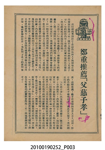 1. 《父慈子孝》,HKMDB,https://hkmdb.com/db/movies/view.mhtml?id=1924&display_set=big52. 新聯影業公司,HKMDB,https://hkmdb.com/db/companies/view.mhtml?id=552&display_set=big5瀏覽日期:2022/09/01