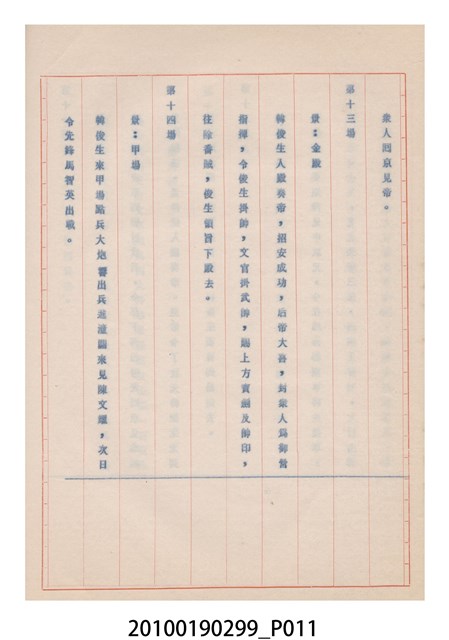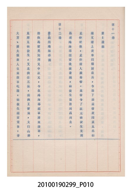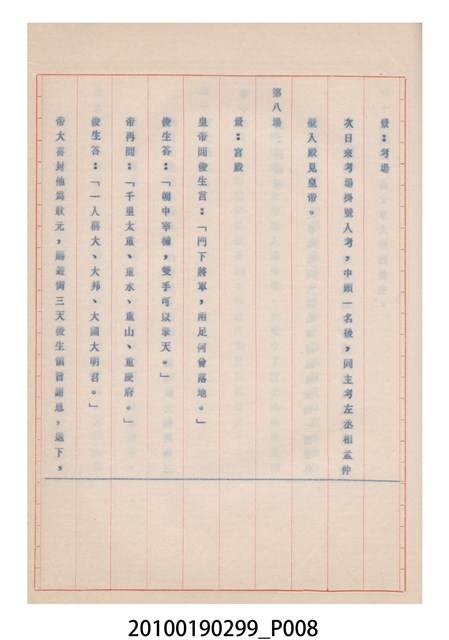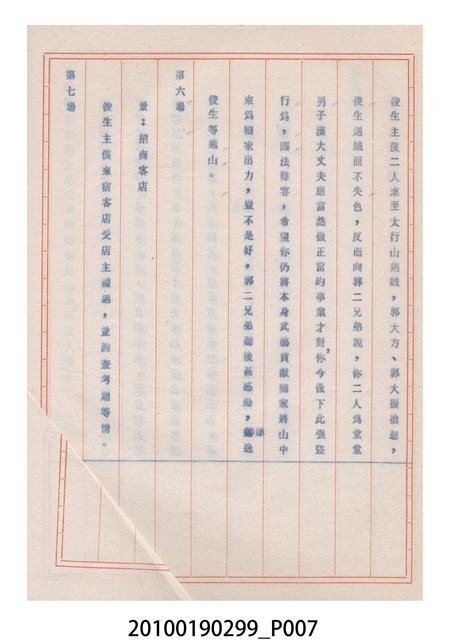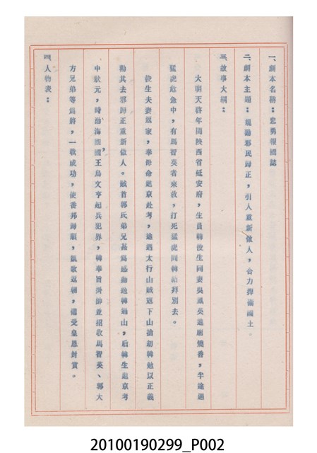 1.本件為全勝閣掌中班送審掌中劇劇本《忠勇報國誌》,由全勝閣掌中班撰寫演出1天用的劇本,呈送予臺灣省地方戲劇協進會審查,經審審查後以(59)修總字第002號發回。2.臺灣省地方戲劇協進會於民國41年成立,推動歌仔戲、布袋戲等戲劇遵照「反共抗俄」的國家政策,改良戲劇符合社會教育目標。協進會的任務之一為劇本提供及改良,民國59年成立編劇委員會並設置劇本編修小組,修改各劇團送審的劇本。