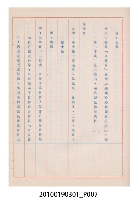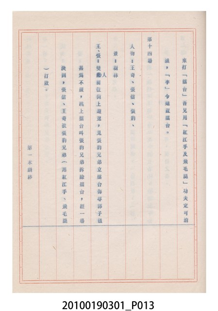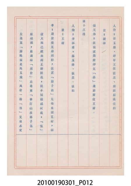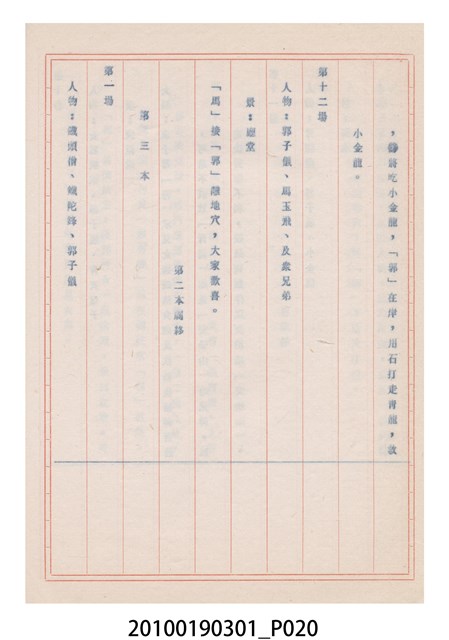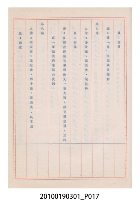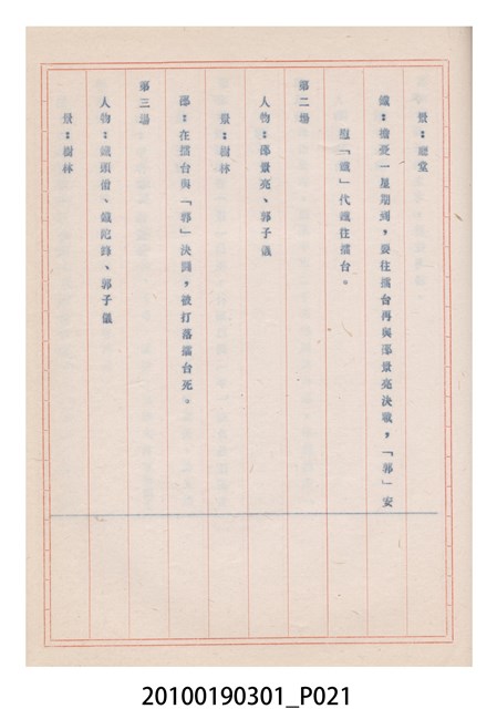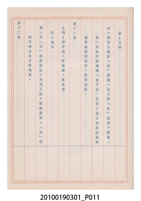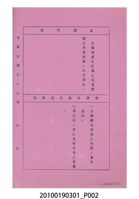 1.本件為人形閣掌中劇團送審掌中劇故事《群英護國誌》,由人形閣掌中劇團撰寫演出3天用的故事,呈送予臺灣省地方戲劇協進會審查,經審審查後以(59)修總字第69號發回。2.臺灣省地方戲劇協進會於民國41年成立,推動歌仔戲、布袋戲等戲劇遵照「反共抗俄」的國家政策,改良戲劇符合社會教育目標。協進會的任務之一為劇本提供及改良,民國59年成立編劇委員會並設置劇本編修小組,修改各劇團送審的劇本。