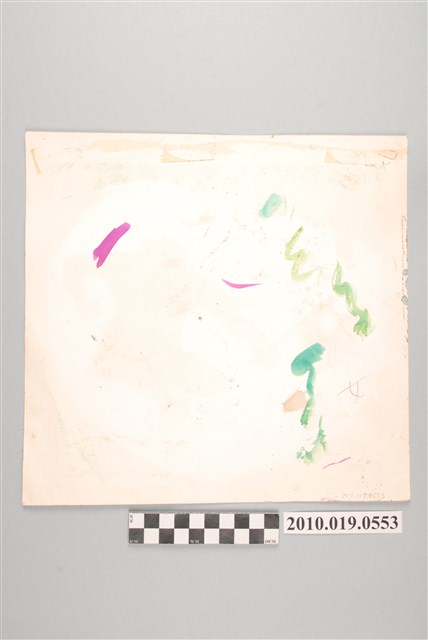 1.本件為「童書原稿散頁72」,此件為單面散頁。根據畫風及人物與登錄號「2010.019.0485」為同系列故事。2.這2張原稿圖像,圍繞著上古巨人、斧頭等元素,推測故事內容與中國童話故事「盤古開天」有關。
