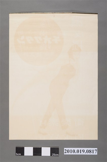 1. 本物件為藤澤製藥株式會社強力硫克肝海報,海報底色為白色,中間有一名女子表達精神良好的意像。右上方為海報主題「強力チオクタン綜合強肝保健剤」,其中文名稱為「強力硫克肝」。該藥品主打含有可以強化肝臟的硫辛酸銨,並配合十一種維他命,能處理疲勞、食慾不振以及皮膚粗糙的問題。海報最下方為本藥品製作公司日本藤澤製藥株式會社之商標。