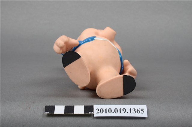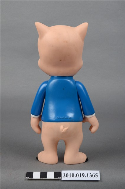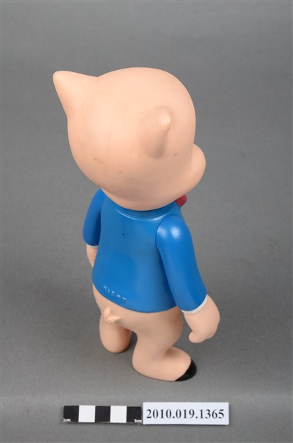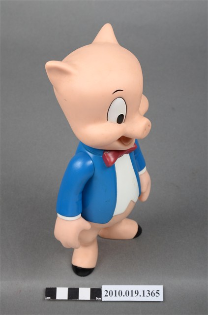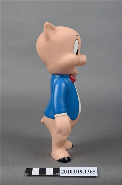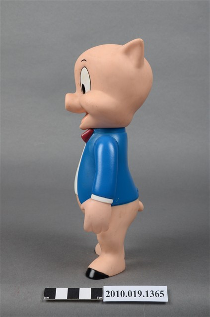 本物件為豬小弟玩偶,塑膠材質,呈站姿。豬小弟是Warner Bros. Entertainment, Inc.製作的《樂一通》卡通中角色之一,此公司為全球最大的電影和電視娛樂製作公司之一。玩偶身穿藍色西裝,搭配白色上衣與紅色領結,眼睛有黑、白色顏料塗裝。本物件表面上有許多髒污。