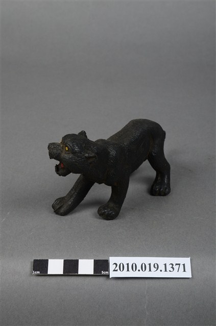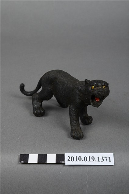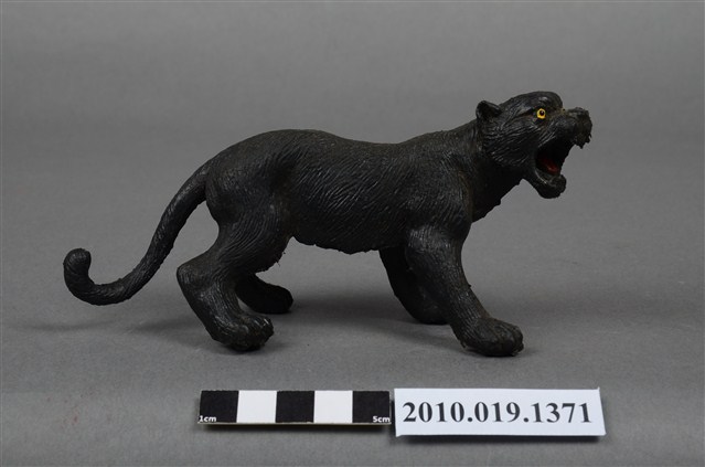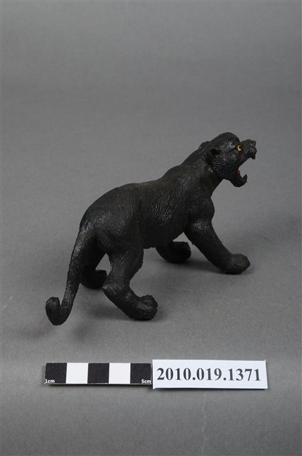 本物件為黑豹玩偶,塑膠材質,作張嘴姿態。玩偶顏色為黑色,眼睛有黃色及黑色顏料塗裝,舌頭為紅色。本物件表面上有許多髒污。