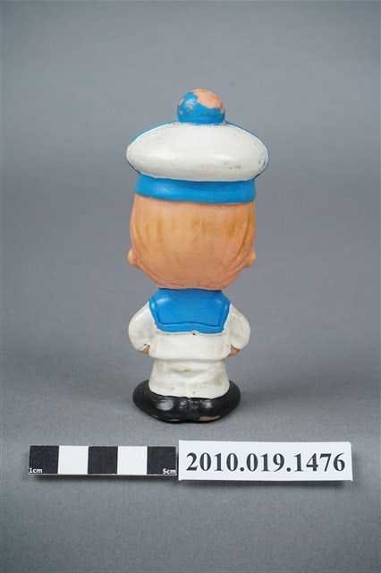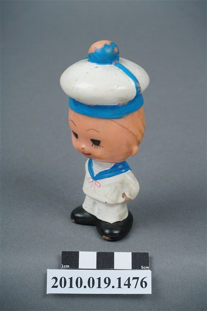 本物件為水手男孩玩偶,塑膠材質。玩偶臉部有著長睫毛,眼睛處有黑色顏料塗裝,呈閉眼貌。頭戴藍白色水手帽,身穿白色水手服並搭配藍色領巾與粉紅色蝴蝶結。玩偶底部有一圓形孔洞,本物件表面上有多處顏料剝落現象。