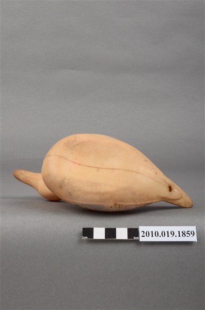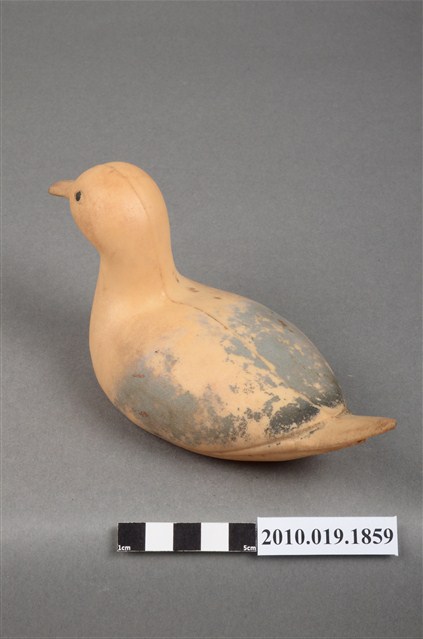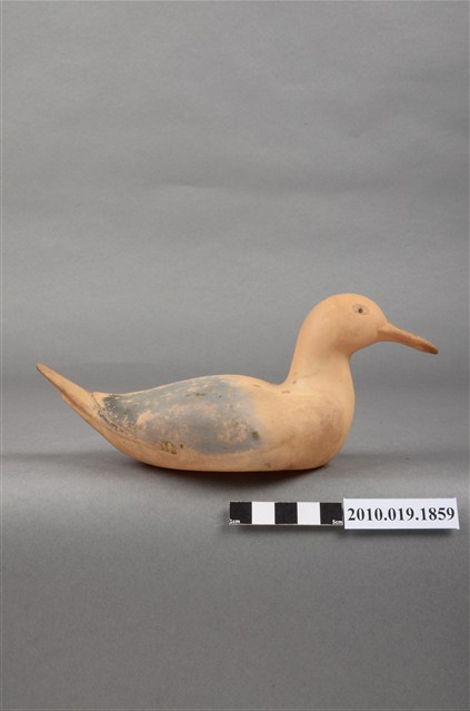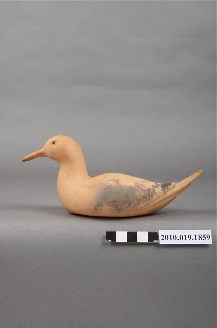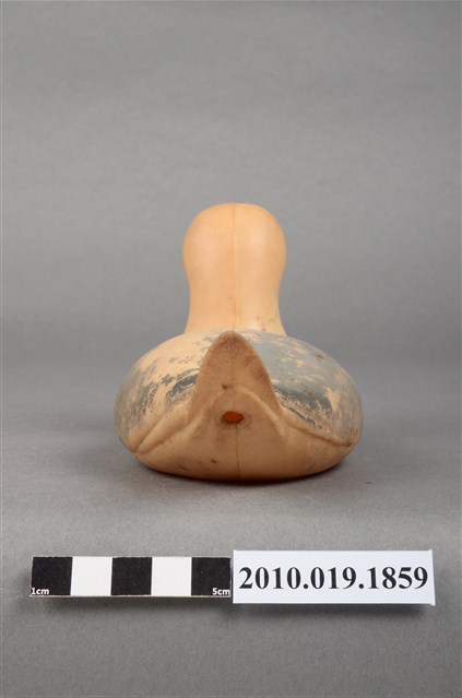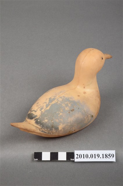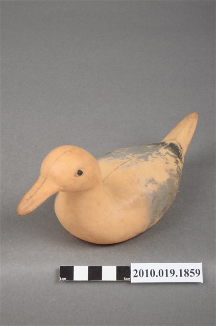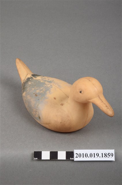 本物件為鴨子玩偶,材質為塑膠,呈現孵蛋造型。鴨子玩偶整隻為黃色,有對小小圓圓的眼睛,扁長的嘴巴,合攏的翅膀原應有銀色漆,現已嚴重落漆,鴨子尾端底下有個小孔。