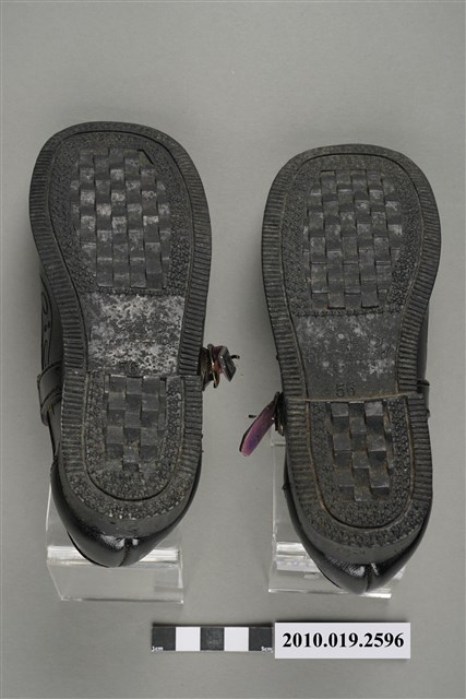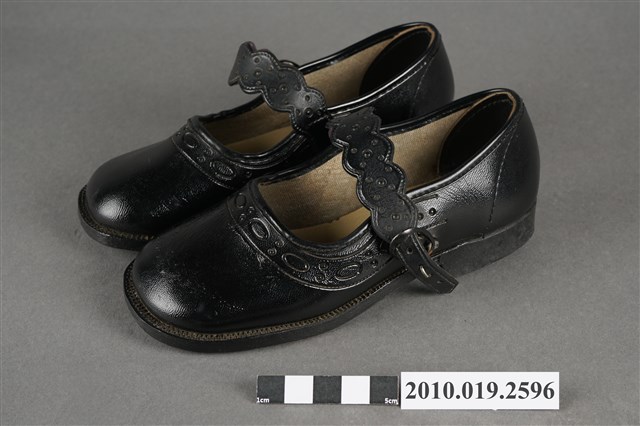 1.本雙永昌牌兒童皮鞋為傳統瑪麗珍鞋款式,黑色皮革材質,包腳圓楦頭,在腳背有一條綁帶,穿著時以環扣固定。鞋外底為黑色膠底,鞋內底部印有「永昌」、「Baby Brand」綠色字樣及一個幼兒頭像圖樣。2.1960年代後,因經濟環境改善,鞋履需求成長,加上製鞋業列為重要外銷加工業,製鞋業蓬勃發展,臺灣有「製鞋王國」美名。然而當時除了「生生皮鞋」「寶島皮鞋」等少數本土品牌外,臺灣零售市場大多為白牌(no brand)鞋品,銷售通路主要集中在傳統市集、攤販及街邊店等人潮聚集處。