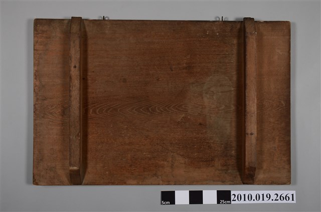 1.本件五福商店麒麟票陽傘毛巾特約招牌為木頭製,橫長方形,招牌中央為乘著祥雲的麒麟祥獸圖,麒麟四周有「登錄商標」的黑色字樣,招牌的上方頂端則刻有「麒麟票陽傘毛巾」黑色字樣,右側刻有「製造元」、「大阪荒木合名會社」黑色字樣與紅色的山形商標,左側則刻有「特約店」、「五福商店」黑色字樣及紅色的「福」字圓形商標。招牌背面有2條直向木條加固,招牌上方邊院釘有兩個金屬掛鉤,可將招牌壁掛於牆上。此類招牌通常會掛在商家門口或是店內人潮出入頻繁之處,告知有標示及廣告效果。2.五福商店為日治時期臺南市的1家商店,1914年由創始人楊添賜在臺南本町三丁目102番地開設,之後又於1930年在西門町四丁目27番地(現今中正路)興建新店鋪,販賣各式日洋雜貨、化妝品、唱片、留聲機、肥皂,生命保險和火災保險。