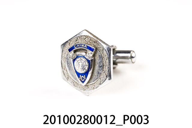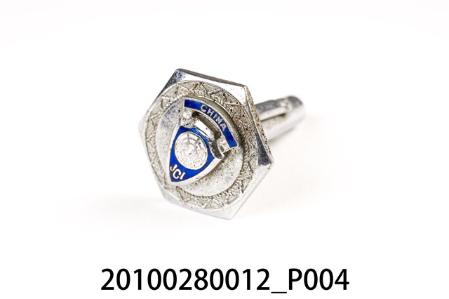 本物件為國際青年商會中華民國總會紀念章,由劉樹森先生所有,該紀念章以銀色與藍色為主,整體為正六邊形。中央為一藍色盾狀,上方有「CHINA」字樣,下方有「JCI」字樣,四周有諸多線條圖樣。