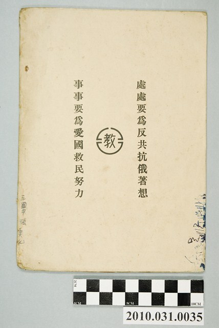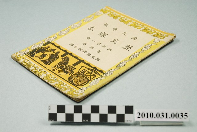本件為國立編譯館主編《國民學校歷史課本》,版次為修訂暫用本,冊次為高級第1冊,發行時間為民國51年(1962)8月,由上海印刷廠承印,臺灣省政府教育廳發行。本書共有18課,包括「文字的發明」、「一位忠心保國的宰相」、「偉大的孔子」等課目,尾頁附有大事年表。