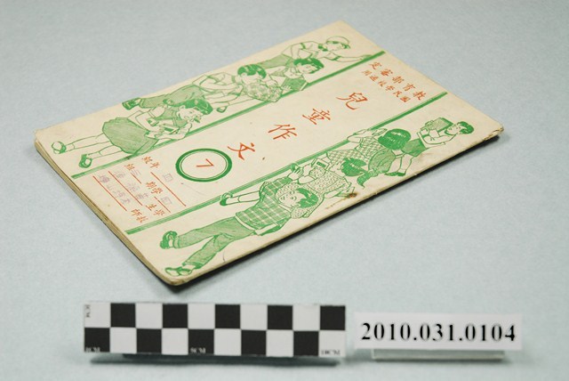 本文物為四學期三組學生黃福德之作文範例暨練習簿,由老師李坤山批改過;本書共十二冊,每學期使用一冊,本冊主要為字詞的研究練習、書信寫作、句構研究、造句及標點符號練習等;封底印有「實行三民主義」、「復興中華民族」等標語。