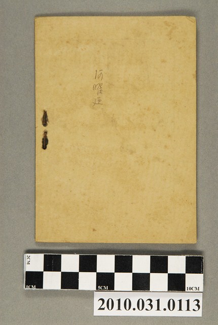 本文物為輕兵器講義,內容為美造M9A1式火箭筒講述;封底有正楷書有「何曜廷」三字,推測何曜廷為書籍所有人。