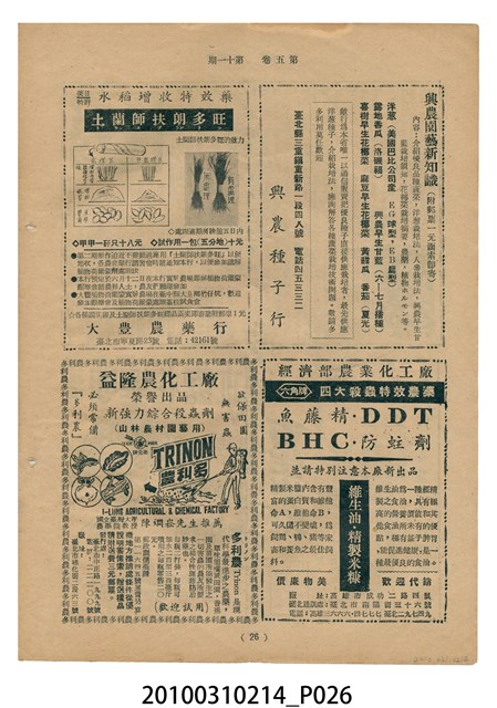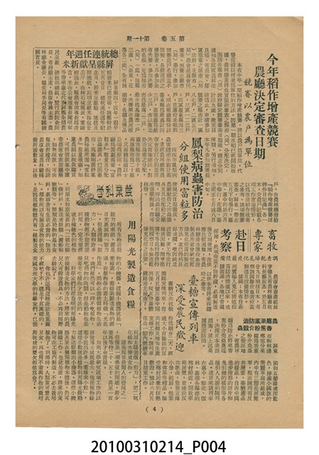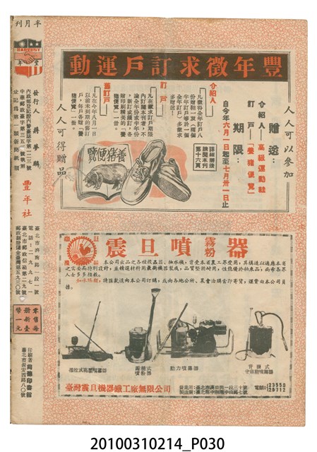 2.《豐年》雜誌是由豐年社所發行的刊物,豐年社成立於民國40年(1951),成立目的在發行銷售有關農業書刊、產品及資材,以服務農民、提高農家所得、改善農家生活。同年7月15日開始發行《豐年》半月刊,初期定位為專業性的農業雜誌,後為因應經濟結構及農村社會的改變,內容也隨之調整,收錄有關生活與生態問題之文章。民國106年(2017)9月,雜誌改為月刊,至今。