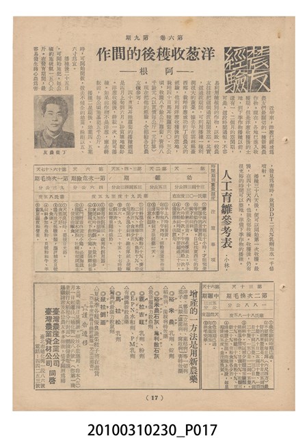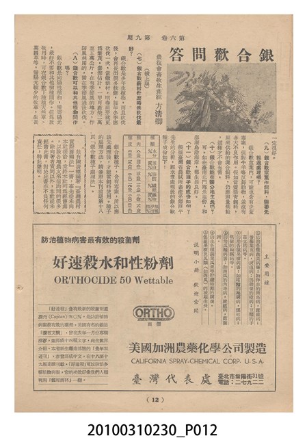 2.《豐年》雜誌是由豐年社所發行的刊物,豐年社成立於民國40年(1951),成立目的在發行銷售有關農業書刊、產品及資材,以服務農民、提高農家所得、改善農家生活。同年7月15日開始發行《豐年》半月刊,初期定位為專業性的農業雜誌,後為因應經濟結構及農村社會的改變,內容也隨之調整,收錄有關生活與生態問題之文章。民國106年(2017)9月,雜誌改為月刊,至今。