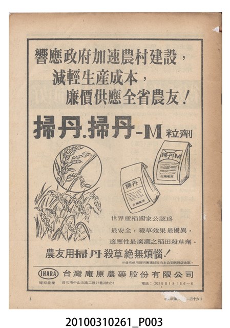 2.《豐年》雜誌是由豐年社所發行的刊物,豐年社成立於民國40年(1951),成立目的在發行銷售有關農業書刊、產品及資材,以服務農民、提高農家所得、改善農家生活。同年7月15日開始發行《豐年》半月刊,初期定位為專業性的農業雜誌,後為因應經濟結構及農村社會的改變,內容也隨之調整,收錄有關生活與生態問題之文章。民國106年(2017)9月,雜誌改為月刊,至今。
