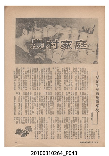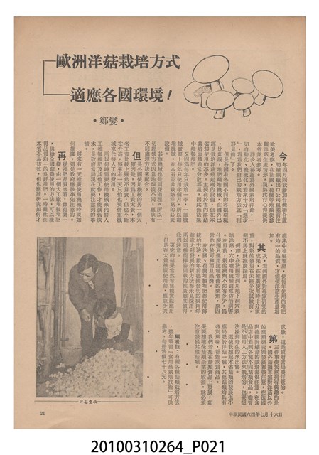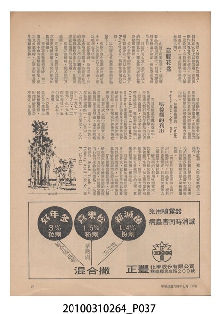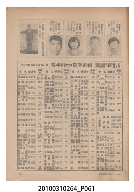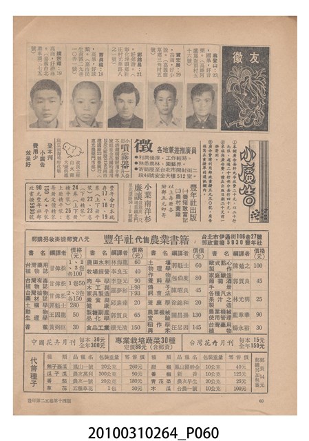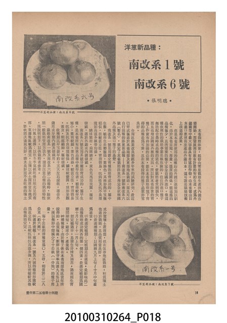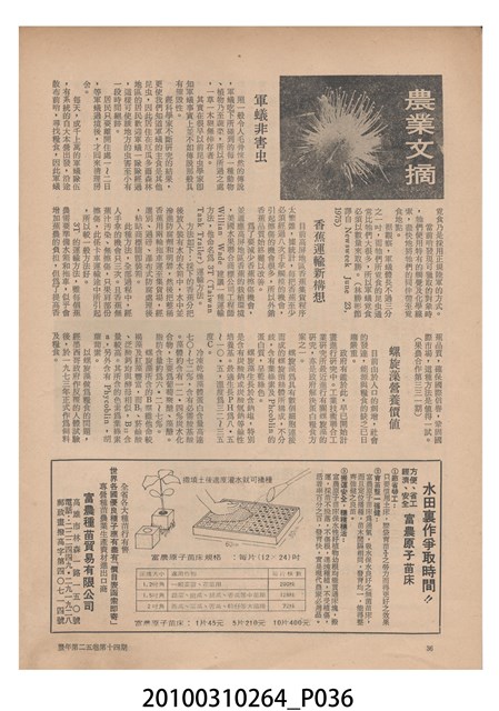 2.《豐年》雜誌是由豐年社所發行的刊物,豐年社成立於民國40年(1951),成立目的在發行銷售有關農業書刊、產品及資材,以服務農民、提高農家所得、改善農家生活。同年7月15日開始發行《豐年》半月刊,初期定位為專業性的農業雜誌,後為因應經濟結構及農村社會的改變,內容也隨之調整,收錄有關生活與生態問題之文章。民國106年(2017)9月,雜誌改為月刊,至今。