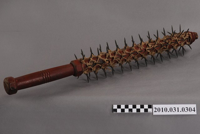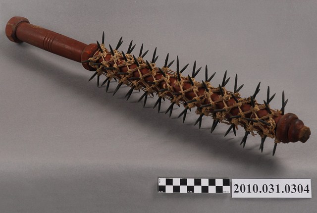 銅棍也稱「狼牙棒」,為乩童五寶之一,乩童在降駕時以之鞭打背部,透過見血來召請五營兵將或辟邪。臺灣常見之銅棍其長度約二尺半,在木棍上裝銅釘或是三角鋼片,裝釘子的稱「釘棍」,鋼片的稱「角棍」,多作八行排列,十三支與十四支釘子各四排,或是二十七支釘共四排,共計一百零八支釘,此乃依據八卦與三十六天罡七十二地煞而來。