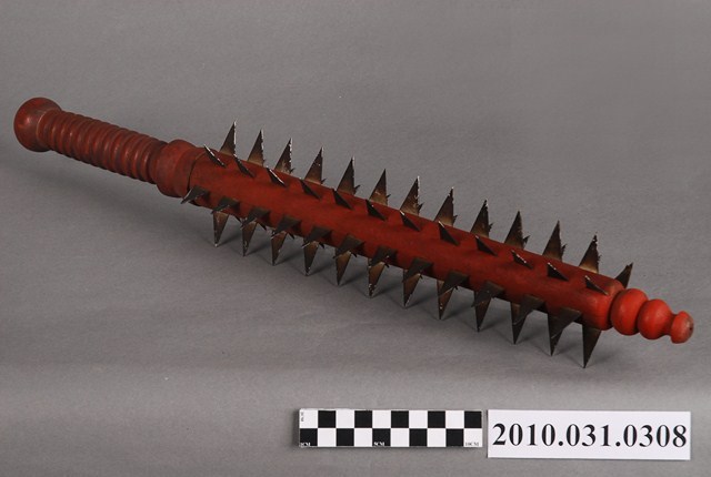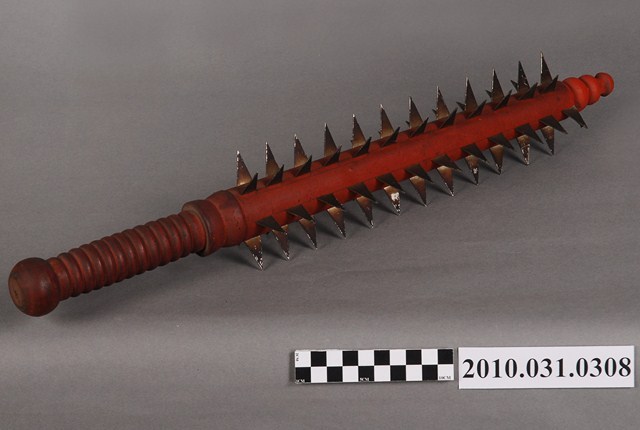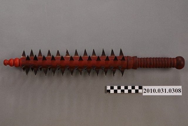 銅棍也稱「狼牙棒」,為乩童五寶之一,乩童在降駕時以之鞭打背部,透過見血來召請五營兵將或辟邪。臺灣常見之銅棍其長度約二尺半,在木棍上裝銅釘或是三角鋼片,裝釘子的稱「釘棍」,鋼片的稱「角棍」,多作八行排列,十三支與十四支釘子各四排,或是二十七支釘共四排,共計一百零八支釘,此乃依據八卦與三十六天罡七十二地煞而來。