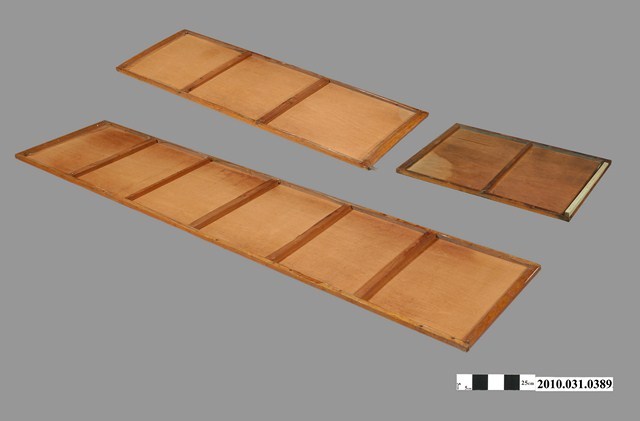 本文物為教學用中國史年表1組3片。分別為教學用中國史年表1、教學用中國史年表2、教學用中國史年表3,3片年表長度不同,可分為長中短,教學用中國史年表1最短,教學用中國史年表3最長。