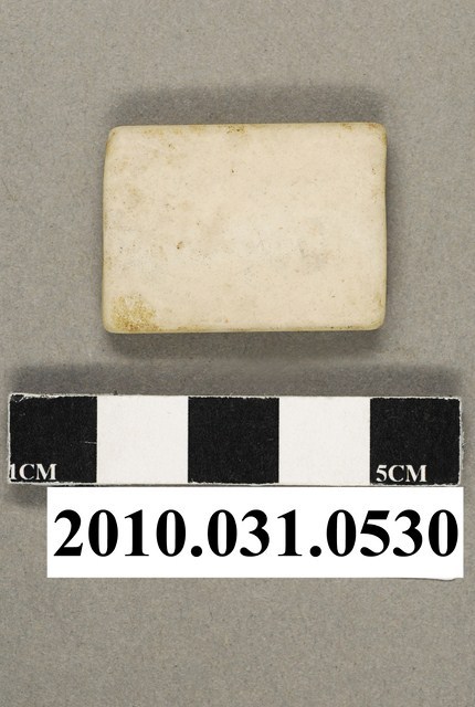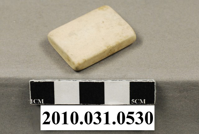 本文物為方形橡皮擦。橡皮擦為米白色,扁形,僅有一表面有字樣,字樣為Lion、STANDARD、W-50,黑色字體。Lion應為品牌名稱。