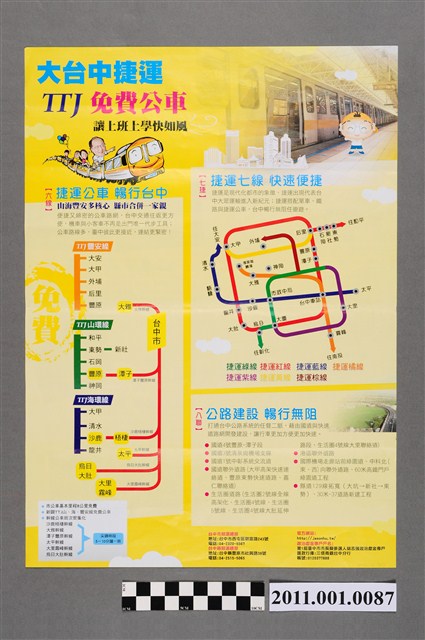 此物件為選舉文宣,為胡志強於2010年參選臺中市市長時所印製。文宣主旨為「縣市合併 好事成雙 臺中交通 168」,正面印有胡志強肖像,並以正、反雙面分6大方向闡述其交通政見。 本件所提及的候選人胡志強,曾任國大代表、新聞局局長、中華民國駐美代表、外交部長,並曾代表中國國民黨連任三屆臺中市市長。2010年,在臺中縣、市合併改制後的首次市長選舉中,胡志強擊敗民主進步黨提名的競爭對手蘇嘉全。 2010年11月27日舉辦的中華民國直轄市市長暨市議員選舉、中華民國直轄市里長選舉,實施範圍包含當時新形成的5個直轄市:臺北市、新北市、臺中市、臺南市及高雄市。是次選舉,對於臺北市之外的其餘四者而言,皆為改制或區域合併後的首次地方公職選舉,大眾媒體普遍以「五都選舉」稱之,此次五都選舉的結果為:臺北市:郝龍斌、新北市:朱立倫、臺中市:胡志強、臺南市:賴清德、高雄市:陳菊,其中臺北、新北、臺中市長由中國國民黨取得,臺南、高雄市長由民主進步黨取得。