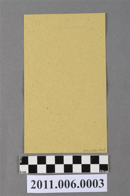 本件將軍錢紙錢以朱紅色版印製於土黃色草紙上,紙錢在方形邊框內上方橫書「將軍錢」三字,下方作古代武將,面有長髯,身穿盔甲,雙手往外微張。本件為宜蘭羅東共和發金紙店於日治時期所刻製的木雕印版,重新刷印。