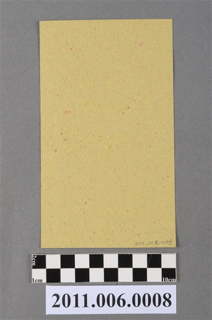 本件地府錢紙錢以朱紅色版印製於黃色草紙上,上方橫框內由右至左書「地府錢」三字,下方框內有並列之文、武判官,文判官居右,頭戴展翅官帽,臉上無鬚,武判官頭戴翹翅官帽,臉蓄長髯,兩判官立於一案桌前。本件為宜蘭羅東共和發金紙店於日治時期所刻製的木雕印版,重新刷印。