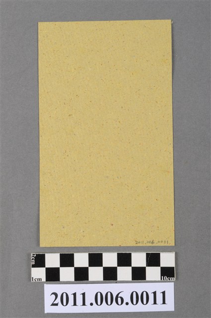 本件陰陽錢紙錢以朱紅色版印製於土黃色草紙上,紙錢在上方橫框內橫書「陰陽錢」三字,下方在方形邊框內作六枚銅錢紋樣,分為兩行三列整齊排列,左右行銅錢紋樣不同,以示有陰、陽之別,右列銅錢上書「陰陽通寶」,左列銅錢面上下各書「陰陽」二字,兩邊有連圈紋。本件為宜蘭羅東共和發金紙店於日治時期所刻製的木雕印版,重新刷印。