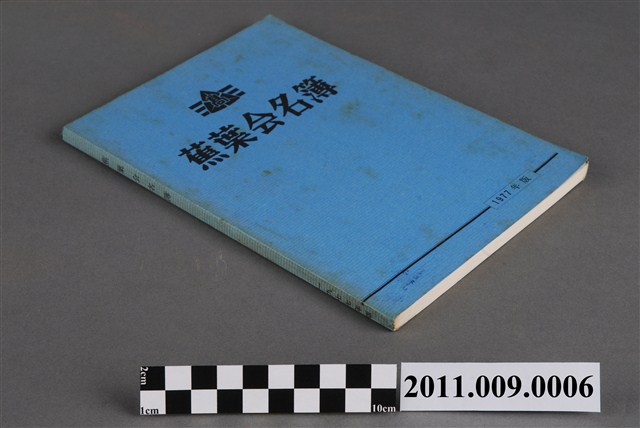 本件為蕉葉會發行《蕉葉會名簿》1977年版,印刷時間為1977年9月20日。封面印有臺北高等學校徽以及「蕉葉会名簿」、「1977年版」字樣。名簿首頁為蕉葉會會則,尾頁印有臺北高校歌,內容依年份、班級排序,有臺北高校學生姓名、就讀大學、就職單位及通訊地址。蕉葉會是臺北高等學校日籍畢業生,戰後返日後於東京所成立的同窗會組織,「蕉葉」之名取自臺北高等學校的校徽內的香蕉葉圖樣,蕉葉惠名簿則是會員名簿,記錄畢業生近況,並進行修訂。