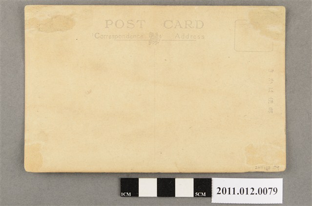 1. 本物件為以北港媽祖為主題的明信片。正面為北港媽祖神座的彩色圖片,神龕內為媽祖神像,左右兩邊為千里眼(右)與順風耳(左)立像。神桌上置有鮮花素果及香爐。背面為書寫處,右上角為郵票黏貼處,右側印「郵便はかき」,上方印「POST CARD」、「Correspondence」、「Address」,中間為一T形分隔線,上有一飛馬圖案。四角有明顯磨損痕跡。2. 北港媽祖廟又稱北港朝天宮,是於西元1694年奉請湄洲媽祖渡海來臺,而後開基立廟,起初於簡單的小廟宇祭祀,後著手建廟並於1700年竣工,主祀天上聖母,迄今信眾遍布全臺。