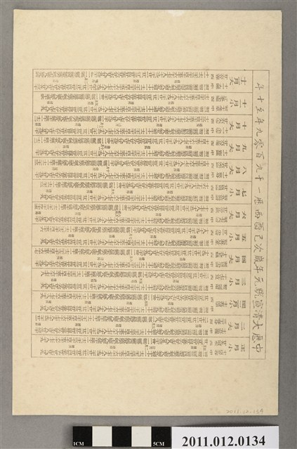 本物件為宣統元年PIN HEAD牌香菸廣告年曆,正面右上角有四包香菸圖示,顯示其產地為「NORTH CAROLINA」即為美國北卡羅萊納州。圖片中有一女子立於橋上,三女乘坐於船,背面有宣統元年之年曆,因而可判斷時間為西元1909年前後。