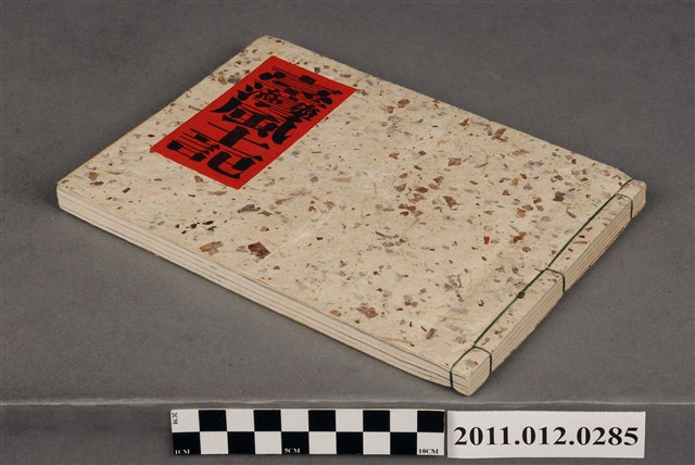 本物件為西川滿編輯之《臺灣風土記》,封面寫有標題臺灣風土記,書背以線繩固定,書底有一圖像。此書為昭和15年(1940)發行,發行地為臺北市大正町孝山房。書籍內容分四部分,卷一至卷四共30多首詩歌作品,如:宮田彌太郎所著〈虎〉、西川滿所著〈華麗島古代蕃歌〉、中山樵所著〈清朝時代の臺灣地方志〉、池田敏雄所著〈臺灣挑燈考〉等。
