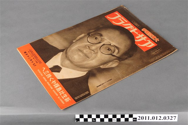 此物件為一紙質雜誌,此書為1943年(昭和18年)10月20日由朝日新聞社發行的《アサヒグラフ》(Asahi Graph,意思為朝日畫報)第41卷第16號總號第1318號,內容刊載日本戰爭時期的戰況以及政策。 《アサヒグラフ》(Asahi Graph)創立於1923年,編輯發行單位為朝日新聞社,刊物內容多記載當時的事件與新聞,並以圖片為輔助。二戰結束後,《アサヒグラフ》以大眾刊物的形式持續發行至2000年。 日本在戰爭時期,對於民眾的政治宣傳以任何形式出現在民眾視野中,從暑假作業簿、主婦雜誌、交通通勤的廣告、宣傳單、唱片、學生制服都有對於戰爭的相關宣傳。此現象起源於日本在1931年的滿州事件爆發後,日本的國內的右派人士、軍方發表一連串「日本主義」相關的言論,將日本的民族主義以及愛國主義傾洩出來,並且在「天皇機關說」事件後將天皇的領袖地位大幅提升。因而在「日本主義」以及神武天皇的「八紘一字」的理想下,將日本對外戰爭正當化、神聖化。