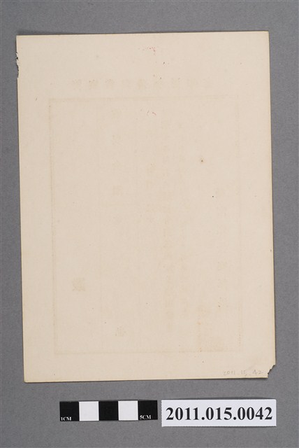 本件為昭和17年(1942)3月1日,臺南州警察部長給永山惠富巡查之警察賞與發令通知書,告知在本年2月20日發給逮捕殺人犯人黃大怣之賞金2圓。本件蓋有臺南州警察部長戳記及「契」字騎縫戳記各乙枚。
