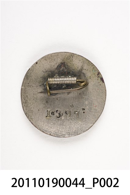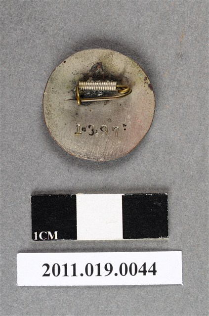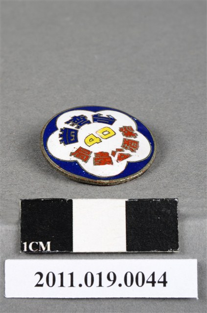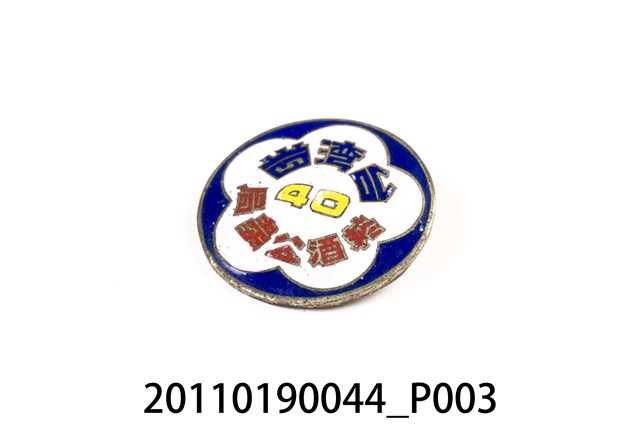 1.本物件為臺灣省菸酒公賣局徽章,為鐵製品,呈圓形,正面底色為藍色,並有白色梅花圖案,圖案上有「台灣省」藍色字樣、「40」黃色字樣、「菸酒公賣局」紅色字樣,背面有別針用以別上衣物,另有刻痕「1397」字樣。