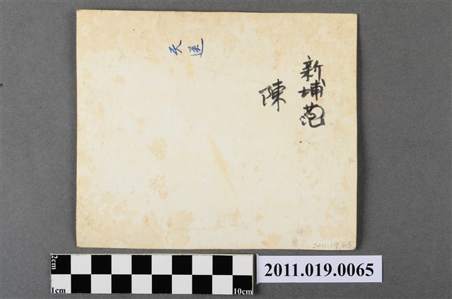 1.本物件為高雄旗山圓潭陳家老厝天德門照片,黑白樣式。由照片可見6名長者並肩坐在家屋之門前,左3位為男性、右3位為女性。由照片上方可見該門為「天德門」,上方設有半拱形門面、兩旁有一對對稱的動物石造浮雕。照片背面可見「新埔范」、「陳」、「天送」字樣。