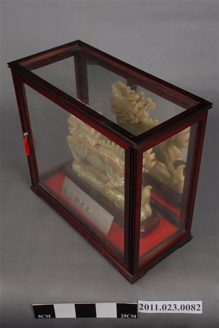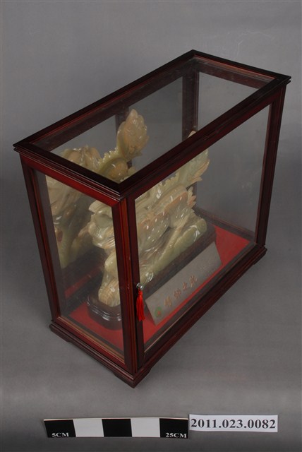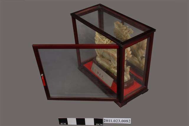 由臺中縣竹師校友會主任委員黃武鎮、委員王秀雄等27人致贈祝賀捐贈者升任臺中縣教育局局長,捐贈者時任該會副主任委員。外罩有玻璃框盒,正面後為鏡子。 麒麟是靈獸的一種,能辟邪,使人逢凶化吉,得貴子,興家業,是常見祝賀之禮的圖案之一。