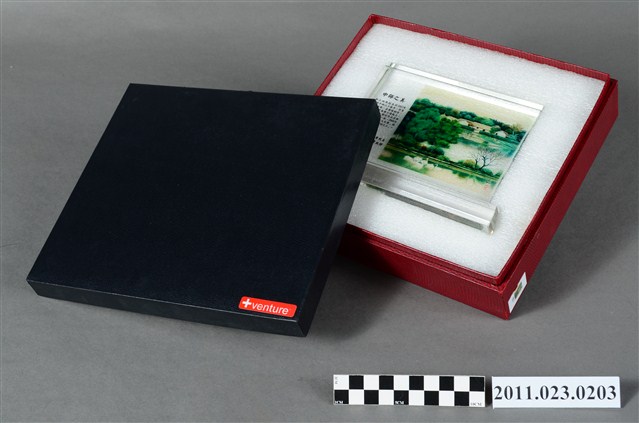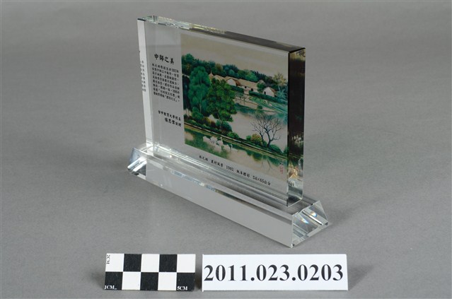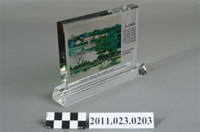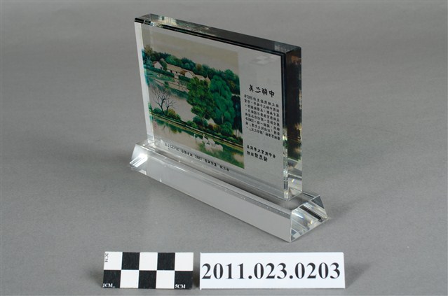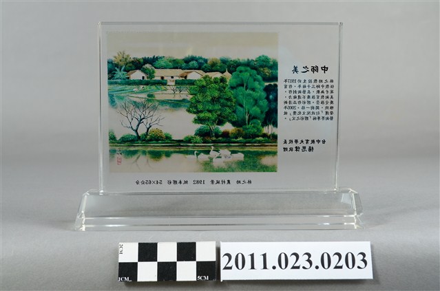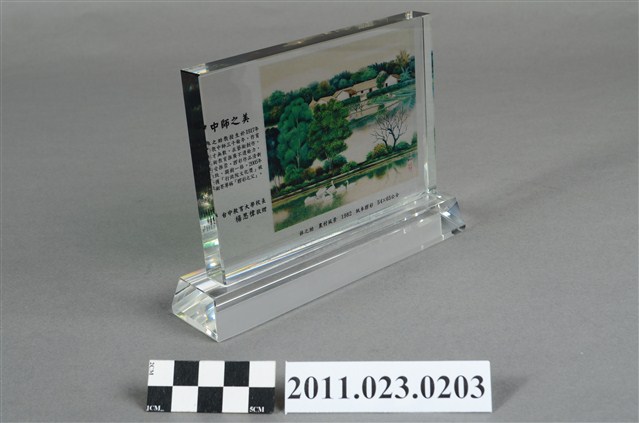 臺中教育大學致贈洪慶峰之「中師之美」水晶紀念獎牌,獎牌上刻有該校林之助教授於1982年創作之膠彩畫《農村風景》、林之助教授2005年獲「行政院文化獎」等簡介、以及「校長楊思偉敬贈」等字。附外盒1個。