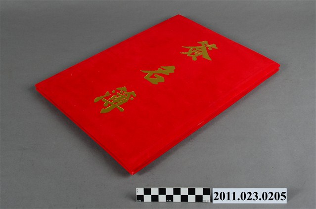 捐贈者洪慶峰於92年(2003)10月8日由臺中縣文化局局長轉任國立臺灣工藝研究所(現改名為國立臺灣工藝研究發展中心)所長。本件為國立臺灣工藝研究所於92年10月8日辦理「新卸任所長交接典禮」來賓簽名留念之簽名簿,屬制式8K簽名簿,附紙外盒1個。新任所長為洪慶峰,卸任所長為翁徐得。