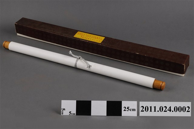 1. 本文物為蔡草如孔子杏壇講學圖。此畫軸為1994年孔子誕辰2545週年釋奠(祭孔)典禮,時任臺南市長及文廟主任委員施治明所贈,附有一掛軸盒。圖中為孔子於桌前講學,旁邊有3名弟子,桌前則有許多學生在聽講。2. 作者蔡草如(1919-2007)為府城著名彩繪畫師,他除了致力於民間廟宇彩繪,也是一位擅長繪畫創作,獲獎無數的藝術家。原名蔡錦添,於西元1953年改名草如,人稱「草如仙」。蔡氏早年隨其舅父陳玉峰(1900-1964)學習傳統民俗繪畫。在母親的支持下,西元1943年蔡氏前往日本東京川端畫學校就讀「日本畫科」。