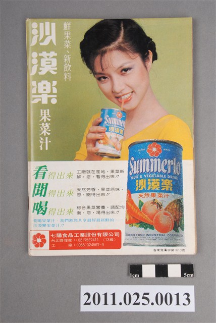 1.本物件為電視周刊TTV WEEKLY第874期,封面照片為明星張琍敏。由物件正面可見「電視周刊TTV WEEKLY 第874期」、「7月8日-7月14日」字樣。其目錄章節可見包括「彩色之頁」(如:孫雪麗婀娜多姿嶄新裝)、「專題報導」(如:台視舉辦節目革新座談會)、「節目特寫」(如:台視推出晚間國語新連續劇 八駿圖)、「專欄」(如:封面人物 張琍敏重新肯定自我)。該周刊內頁亦可見刊物發行人為劉侃如,發行所為台視文化事業公司(地址為臺北市八德路三段二號)。