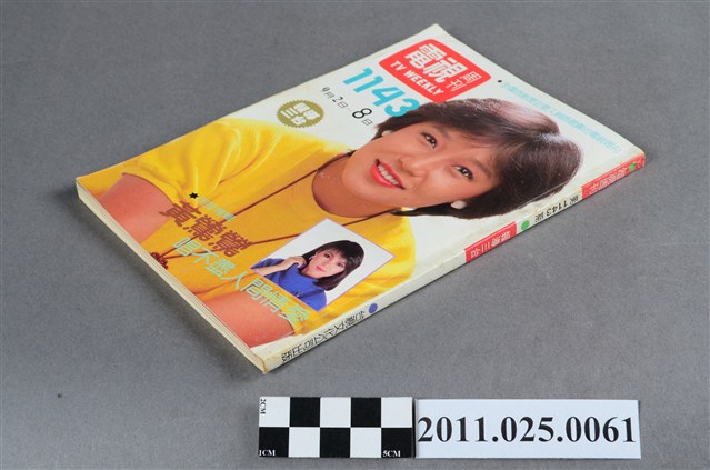 1.本物件為電視周刊TTV WEEKLY第1143期,封面照片為明星余金鳳。由物件正面可見「電視周刊TTV WEEKLY 第1143期」、「9月2日-9月8日」字樣。其目錄章節可見包括「特別報導」(如:台視節目參加國際性影視活動)、「電視論壇」(如:恢宏的基礎 嶄新的出發)、「三台節目焦點」(如:為何心茫茫 刻劃錯綜複雜的愛情)、「綜合專欄」(如:看電視談電視 苦心蓮賺人熱淚)、「人物專訪」(如:孿生兄弟李志希、李志奇)、「彩色之頁」(如:明星周曆 陸小芬)。該周刊內頁亦可見刊物發行所為台視文化事業公司,地址為臺北市八德路三段二號)。