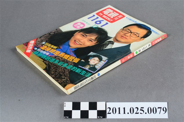 1.本物件為電視周刊TTV WEEKLY第1161期,封面照片為明星沈春華、盛竹如。由物件正面可見「電視周刊TTV WEEKLY 第1161期」、「元月6日-元月12日」字樣。其目錄章節可見包括「特別報導」(如:八四年三台業績大公開)、「電視論壇」(如:多元互動的社會 消費導向的企業)、「三台節目焦點」(如:台視新春推出系列特別節目)、「綜合專欄」(如:看電視談電視 喜見凌波演 情歸何處)、「人物特寫」(如:快樂的捐血人孫越)、「彩色之頁」(如:明星周曆 粗獷的湯鎮業)。該周刊內頁亦可見刊物發行所為台視文化事業公司,地址為臺北市八德路三段二號)。